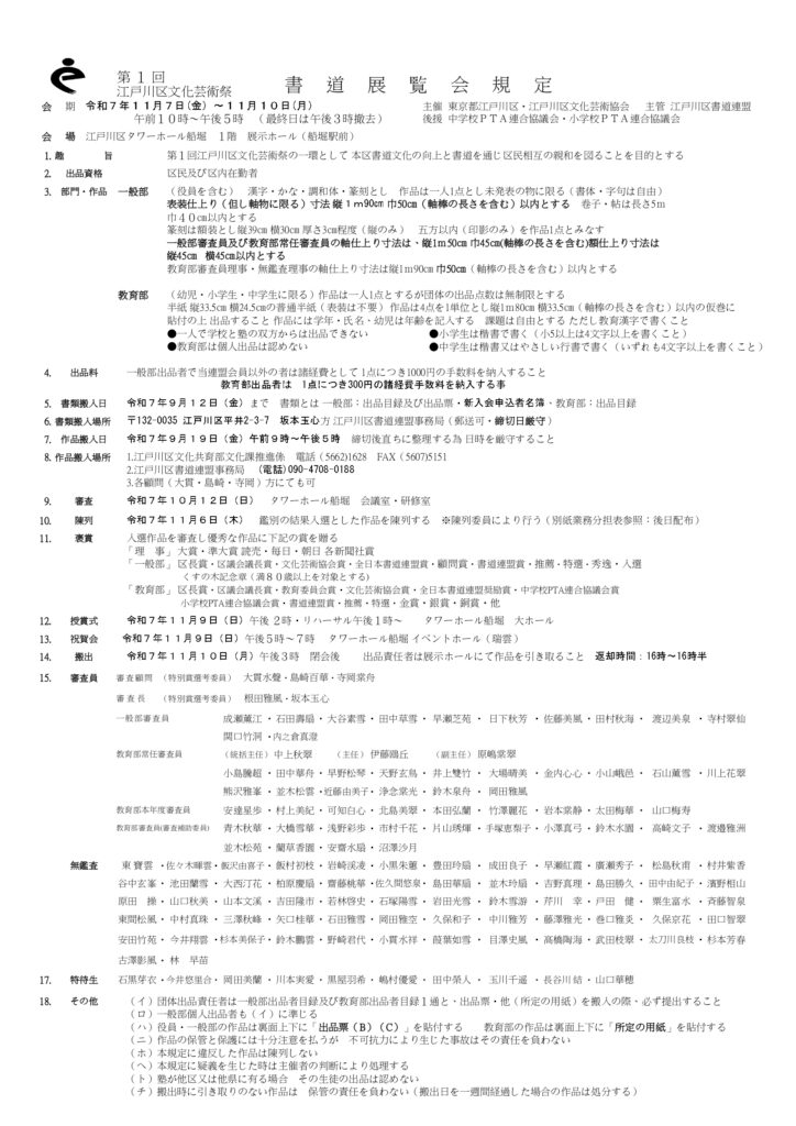 第一回江戸川区文化芸術祭 ⭐︎書道展申込概要⭐︎